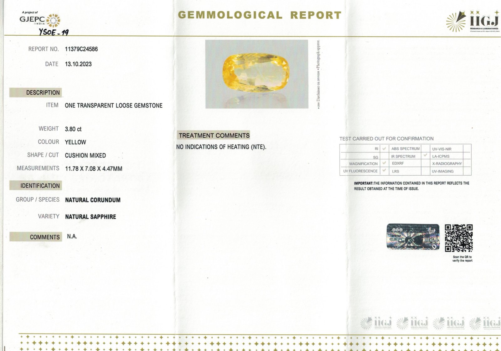 4.61 carats Yellow Sapphire ( 5.25 ratti )